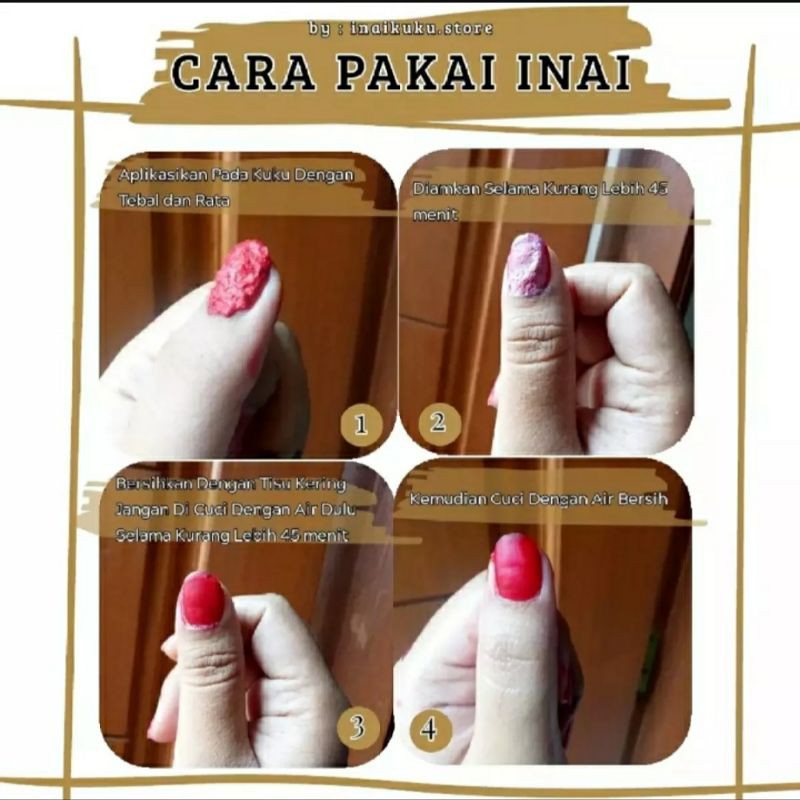 Cara pakai inai kuku. Boleh menyerap air supaya wuduk dan mandi wajib sah. Setelah inai mengering jangan gunakan air dan sabun untuk mencuci sisa inai pada jari dan permukaan. Cara Guna Inai Hitam V Asia.